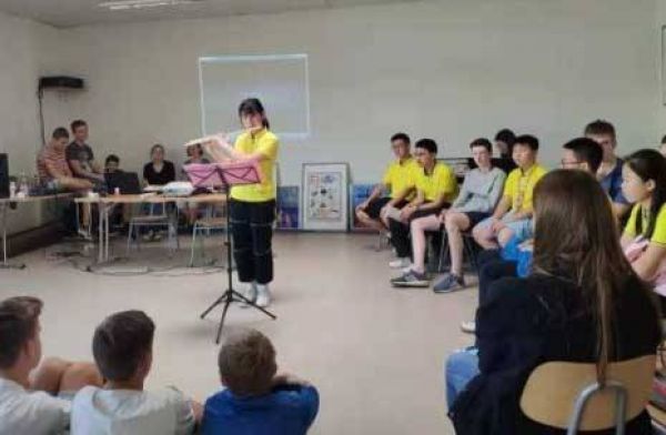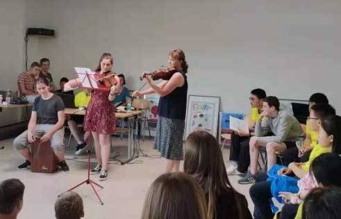 Flöten-, Klavier- und Tanzvorführungen chinesischer Schüler bescherten den deutschen Schülern kulturelle Einblicke. Emilia aus der 12. Klasse führte eine Gitarrenperformance vor und Ellen aus der 9. Klasse spielte ein Stück auf ihrer Geige. Die Auftritte beeindruckte die Schülern aus China. Zum Abschluss sangen die Schüler der Chinesisch-Gruppe aus 9. Klasse gemeinsam mit chinesischen Schülern ein chinesisches Lied ,,Wo sind meine Freunde ( Nar shi wo de pengyou)“ und hoffen, dass die Freundschaft für immer hält.