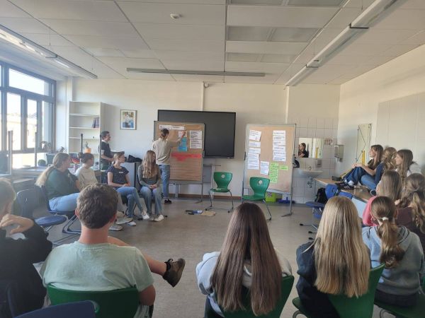 Für die Projekttage konnten verschiedene Schwerpunkte gewählt werden. Die Klasse 9.1 nahm am Workshop „Nationalismus lohnt sich nicht!“ teil. Die Teilnehmenden erarbeiteten, wie völkisch-nationalistisches Denken in der Gesellschaft sichtbar wird. Sie lernten, diese Ideologie zu erkennen, deren Anschlussfähigkeit zu verstehen und eigene Reaktionsmöglichkeiten zu entwickeln. Der Tag begann mit einer Reflexion über Demokratie im Alltag. Anschließend diskutierten die Schülerinnen und Schüler Strategien für ein respektvolles Miteinander und erprobten Argumentationsweisen gegen nationalistische Aussagen.