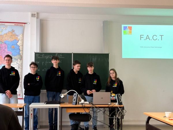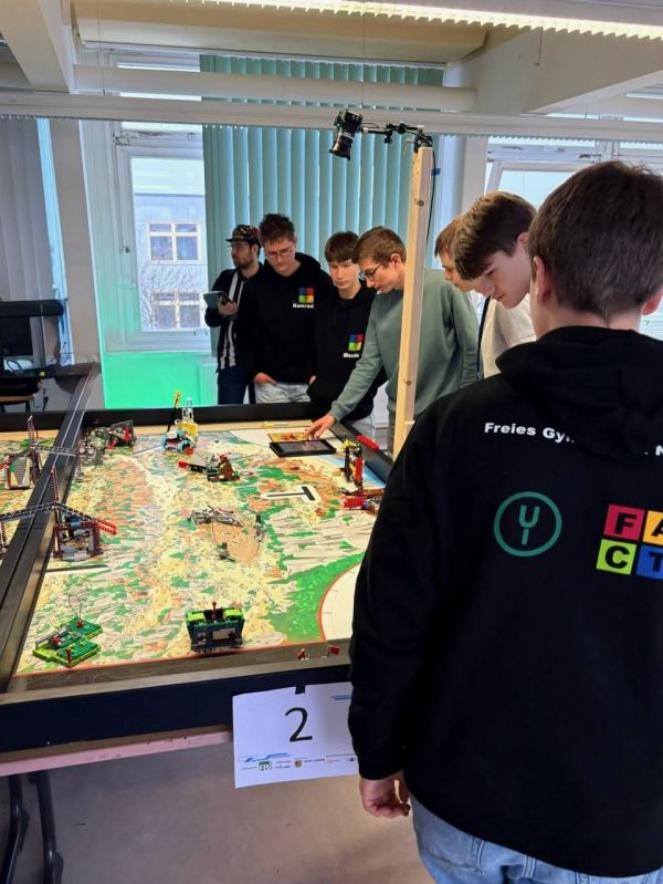 Die sechs Schülerinnen und Schüler des Mittagsbandes "Lego Spike" und ihr Coach haben sich unter dem Teamnamen F.A.C.T. - FGNs autonome Chaos Technologie - am Samstagmorgen über die verschneiten Straßen auf den Weg nach Leipzig in die Felix-Bloch-Schule gemacht, um an ihrem ersten First-Lego-League-Wettbewerb teilzunehmen. Die Wettbewerbe des offiziellen Lego-Roboter-Wettbewerbs stehen jedes Jahr unter einem anderen Motto, dieses Jahr war es “Unearthed” und die Aufgaben drehten sich um das Themenfeld der Archäologie.