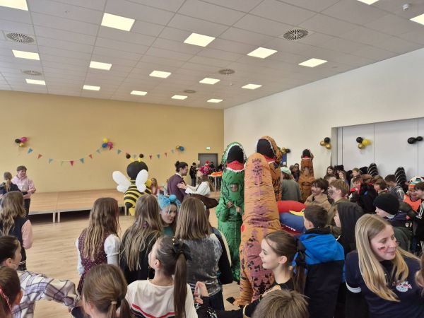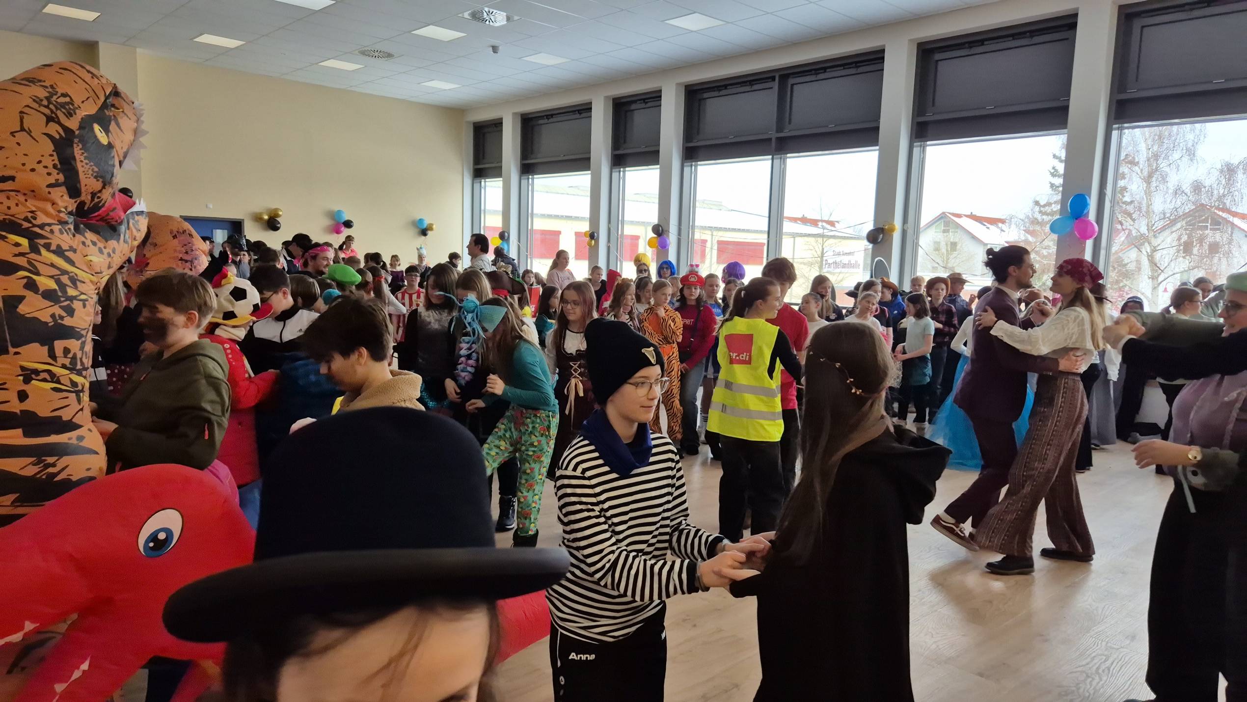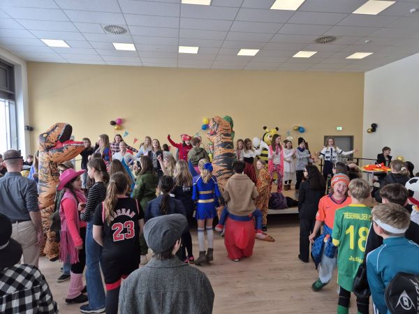 Kurz vor den Ferien herrschte bei uns fröhliches, buntes Treiben: Während der Mittagsbandzeit feierten unsere Schülerinnen und Schüler gemeinsam Fasching in der Aula. Mit Musik, Tanz und viel Begeisterung wurde gelacht, gesungen und ausgelassen getanzt.