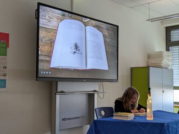 Die Jury bestand aus unseren Deutschlehrern Herrn Mitterecker, Herrn Zahn und Frau Porsch; außerdem waren Frau Stichler von der Schulleitung und der Gewinner vom letzten Jahr dabei. Nachdem alle gelesen hatten, hat die Jury entschieden, wer in die zweite Runde kommt. Das waren Clara und Klara aus der 6.3 und Helena aus der 6.2. Sie durften dann einen Fremdtext aus dem Buch Tintenherz von Cornelia Funke vorlesen.