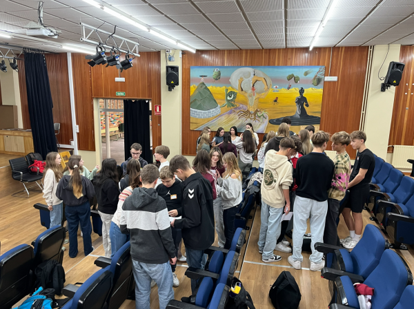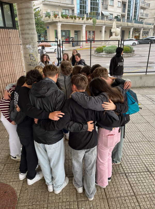 Am Donnerstag trafen wir uns zum Frühstück und fuhren anschließend mit dem Bus nach Ponteareas, wo uns die Schüler, die am Austausch teilnahmen, herzlich begrüßten. Sie zeigten uns die Schule und wir lernten sie durch einige Kennlernspiele besser kennen. Danach gestalteten wir ein Logo für unser Projekt und aßen gemeinsam zum Mittag, ehe wir noch eine Einführung in die Projektaufgabe zu den UN-Nachhaltigkeitszielen und eine kleine Führung durch Ponteareas bekamen. Ziel der Woche war es, in Gruppen, in denen jeweils Schüler aus Ponteareas und Naunhof waren, eine Nachhaltigkeitskampagne zu entwerfen, die zeigt, welche globalen Probleme es gibt und wie wir besser mit den Ressourcen unserer Erde umgehen können.