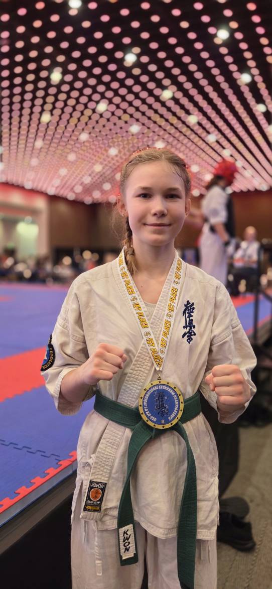 Jolina trat zunächst in der Disziplin Kata an und erreichte in ihrer Altersklasse einen sehr guten 4. Platz. Anschließend startete sie im Kampf (Vollkontakt) und überzeugte dort mit einer starken Leistung. Am Ende sicherte sie sich den 1. Platz in der Altersklasse 14/15 Jahre bis 50 kg.