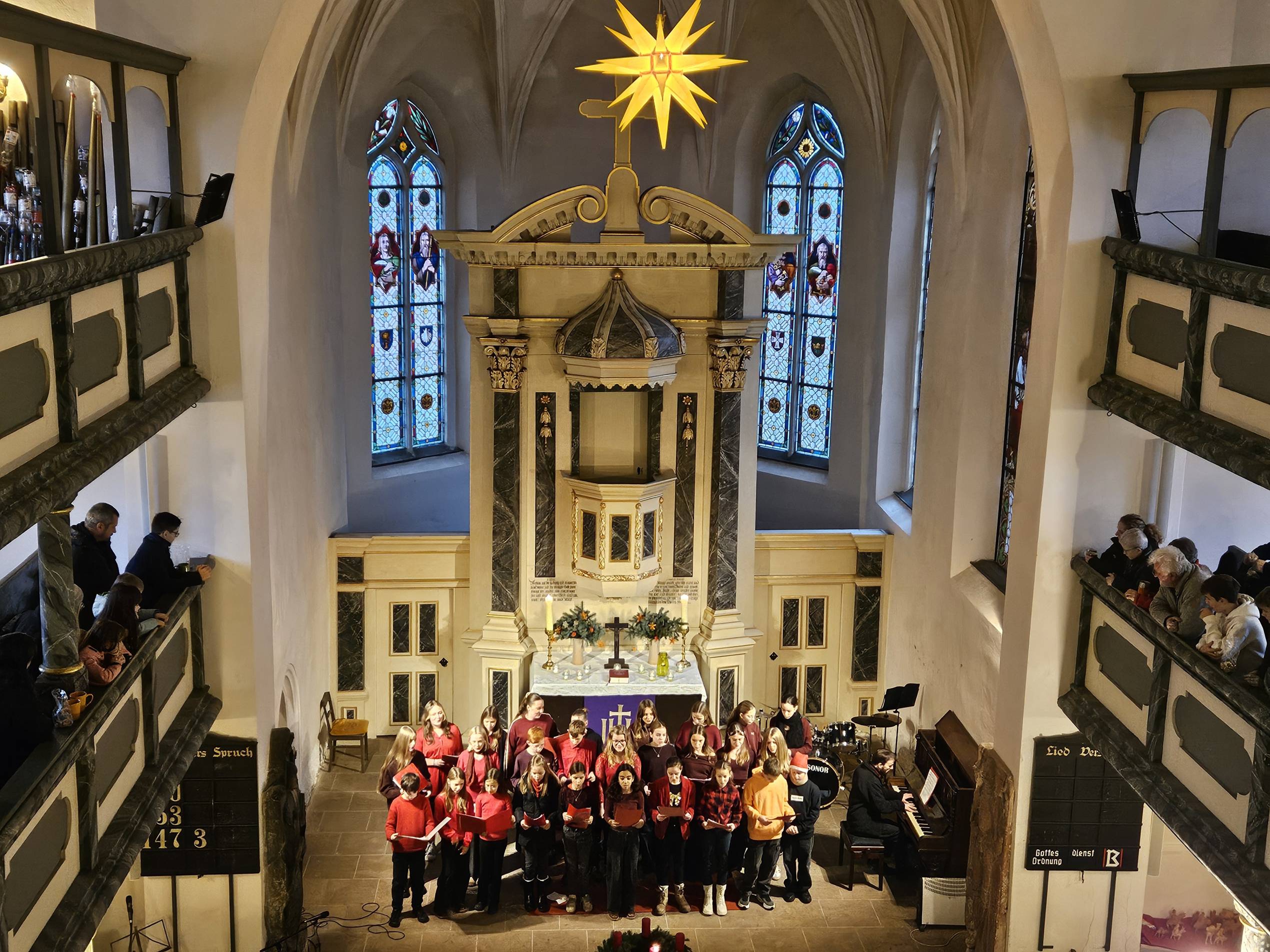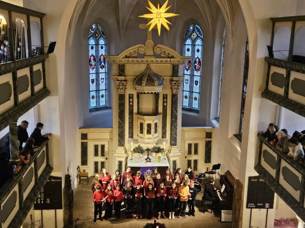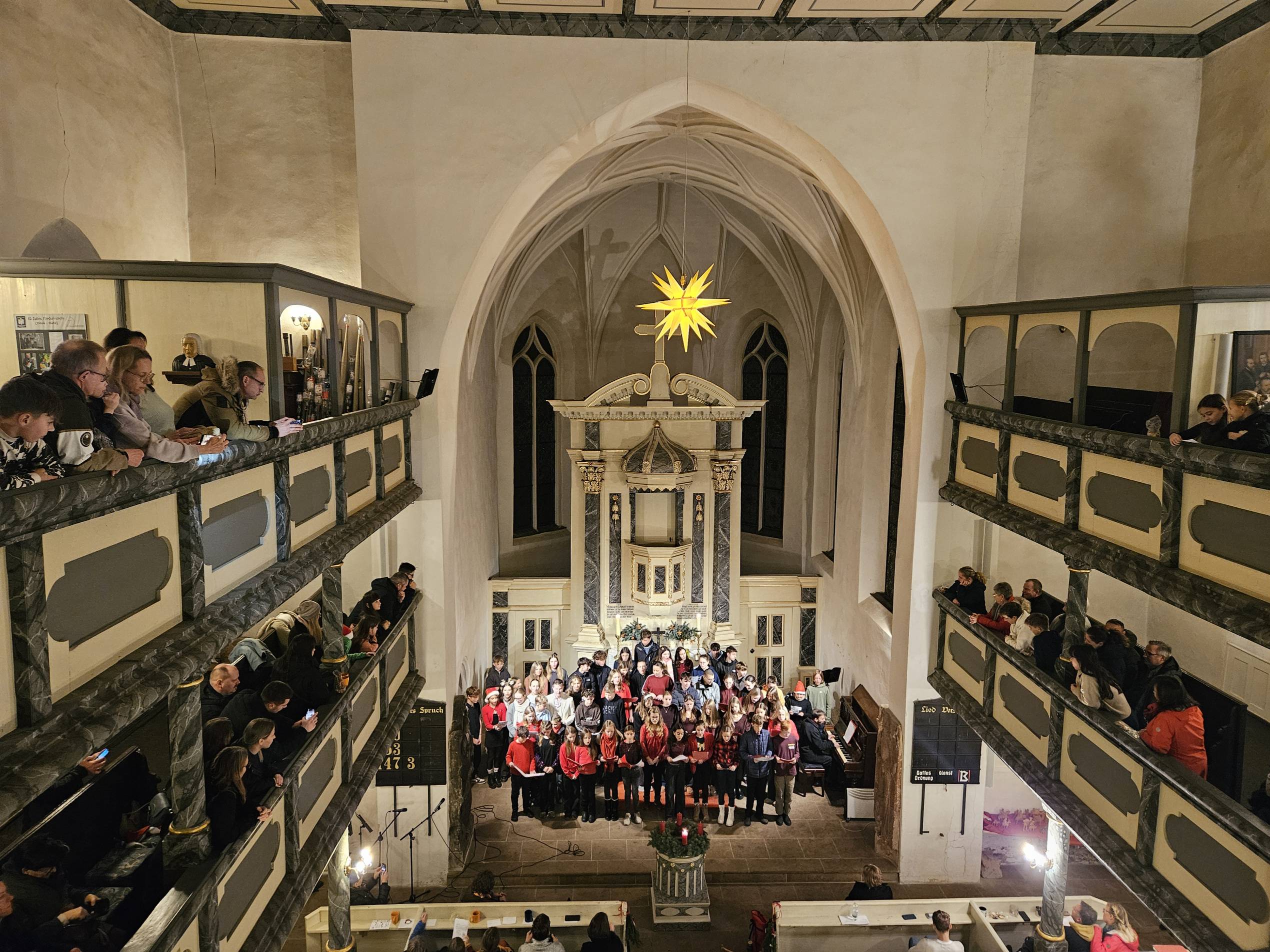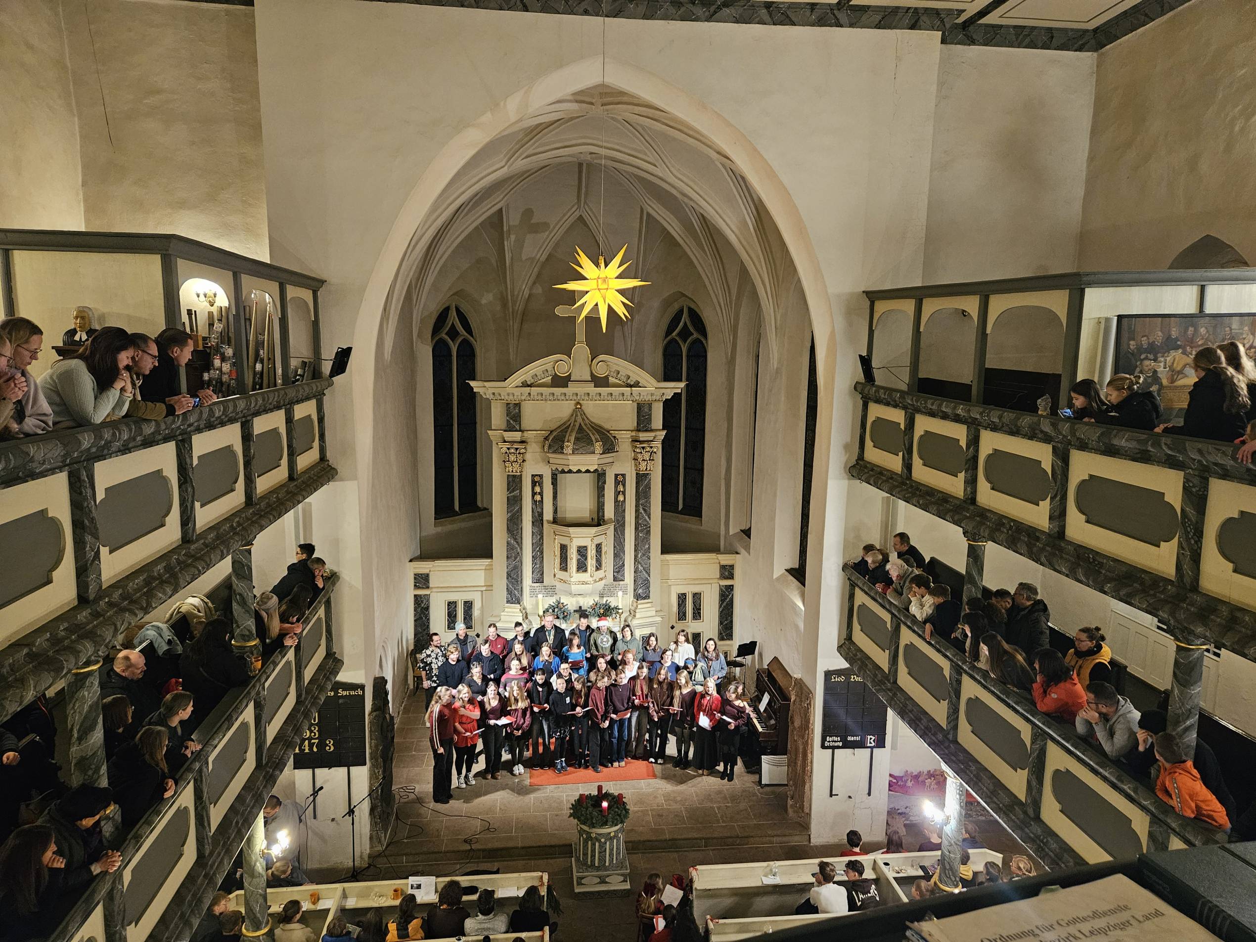 Am 1. Advent fand in der festlich geschmückten Stadtkirche Naunhof das Weihnachtskonzert unseres Gymnasiums statt. Um 15:30 Uhr füllte sich der Kirchenraum mit Eltern, Großeltern und zahlreichen Gästen, die gemeinsam mit unserer Schulgemeinschaft in die Adventszeit starten wollten. Der Eintritt erfolgte auf Spendenbasis zugunsten der Kirchengemeinde Naunhof sowie des Hilfebusses Leipzig, der obdachlosen Menschen in Leipzig Hilfe bietet und insbesondere im Winter dazu beiträgt, Kältetote zu verhindern.