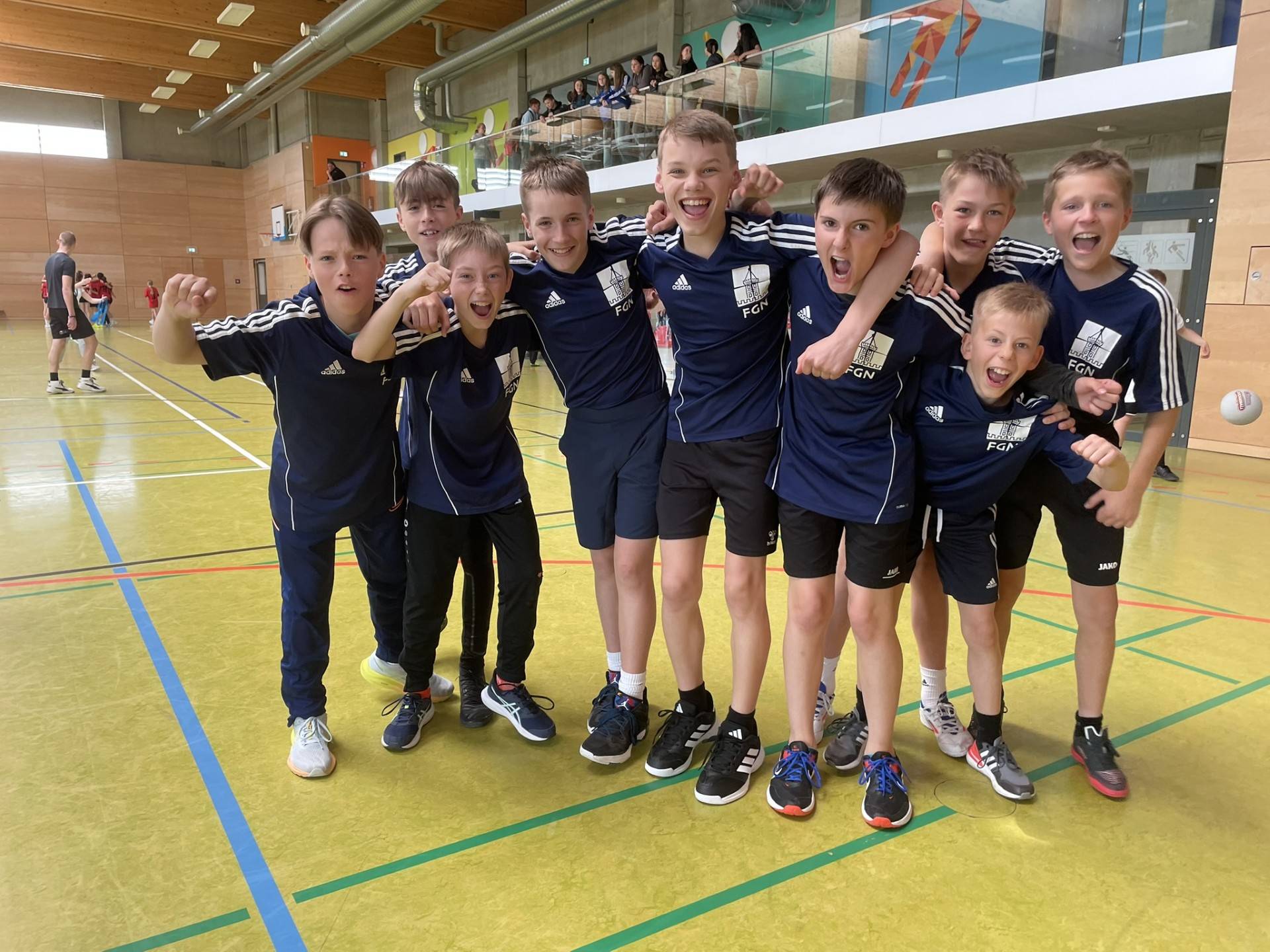 Für das Team der Jungs war es bis zum Ende spannend. Erst im letzten Spiel gegen das Team des Gymnasiums St. Augustin aus Grimma fiel die Entscheidung, ob unsere Jungs mit dem vierten oder dem ersten Platz nach Hause gehen. Der große Kampfgeist und die Ball- und Treffsicherheit der Jungen führte sie schließlich zum Sieg.